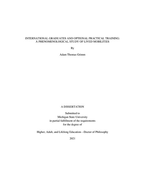 International graduates and optional practical training : a phenomenological study of lived mobilities