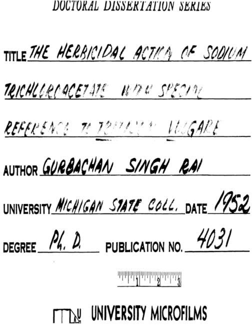 The herbicidal action of solium trichloroacetate with special reference to Triticum vulgare