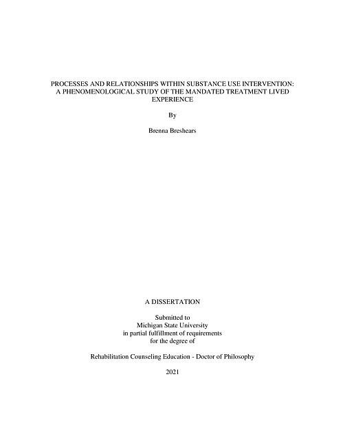 Processes and relationships within substance use intervention : a phenomenological study of the mandated treatment lived experience