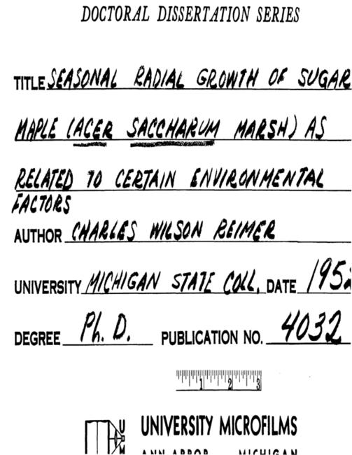 Seasonal radial growth of sugar maple (Acer saccharum Marsh) as related to certain environmental factors