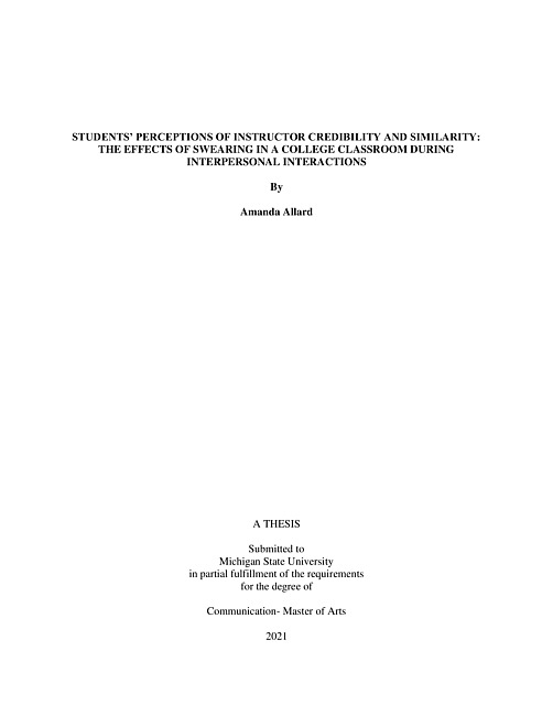 Students' perceptions of instructor credibility and similarity : the effects of swearing in a college classroom during interpersonal interactions