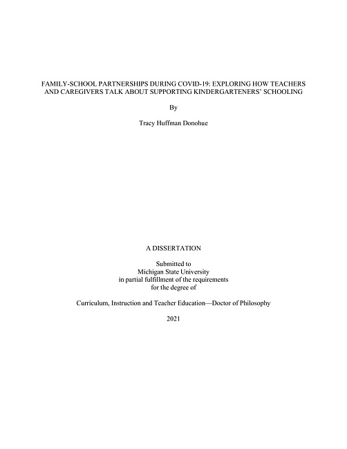 Family-school partnerships during COVID-19 : exploring how teachers and caregivers talk about supporting kindergarteners' schooling