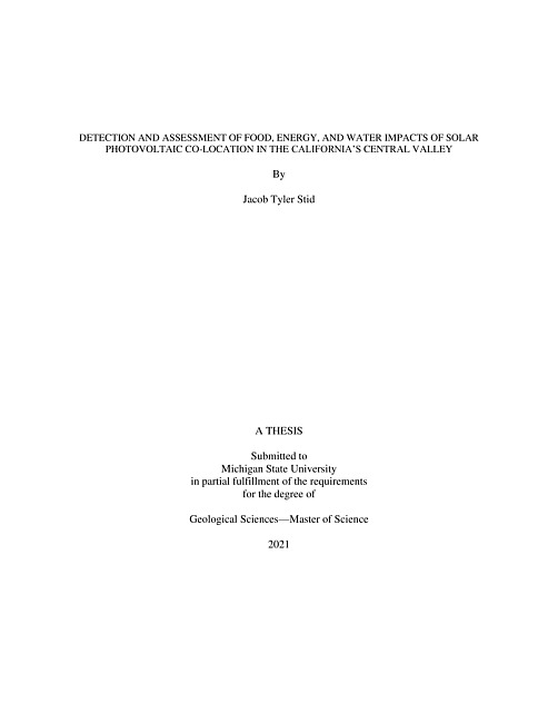 Detection and assessment of food, energy, and water impacts of solar photovoltaic co-location in the California's Central Valley