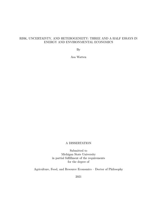 Risk, uncertainty, and heterogeneity : three and a half essays in energy and environmental economics