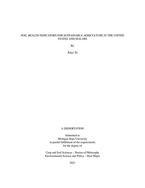 SOIL HEALTH INDICATORS FOR SUSTAINABLE AGRICULTURE IN THE UNITED STATES AND MALAWI