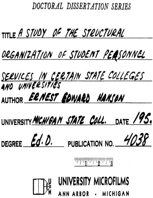 A study of the structural organization of student personnel services in certain state colleges and universities
