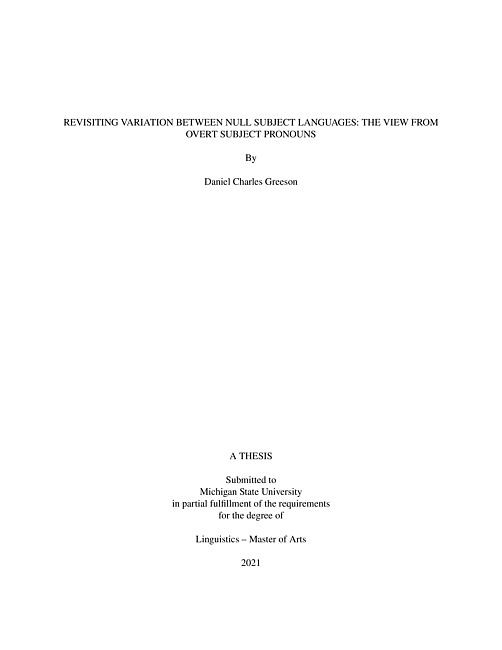 Revisiting variation between null subject languages : the view from overt subject pronouns
