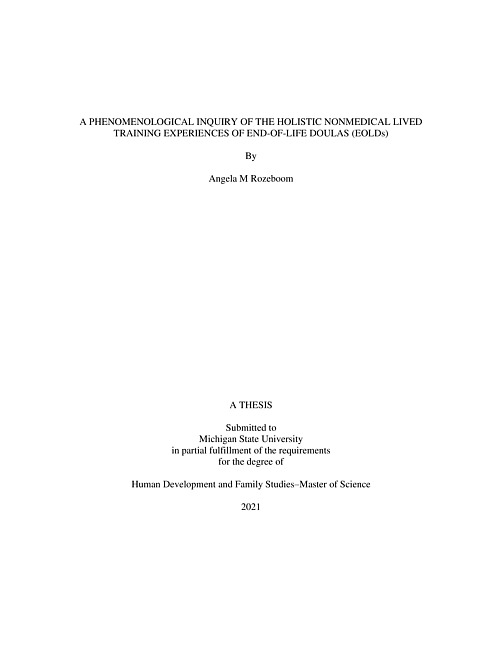 A phenomenological inquiry of the holistic nonmedical lived training experiences of end-of-life doulas (eolds)