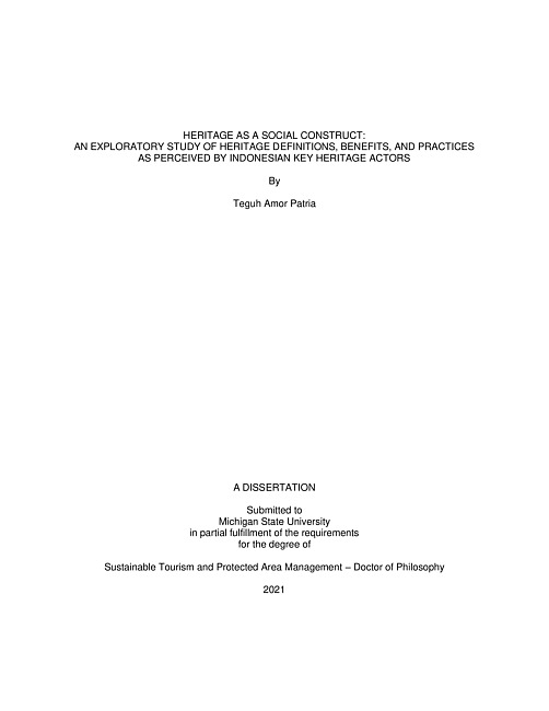 Heritage as a social construct : an exploratory study of heritage definitions, benefits, and practices as perceived by Indonesian key heritage actors