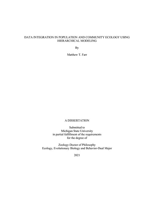 In this dissertation, I develop and apply methods for data integration using hierarchical modeling to estimate the status, trends, and demography of wildlife populations and communities. I use multi-level statistical and mathematical models to explicitly link observed data to latent ecological processes. By separately modeling observational and ecological processes, I can integrate multiple disparate data sources into a unified framework to estimate ecologically relevant population and community parameters, often in the context of wildlife conservation. In Chapter One, I apply a multispecies hierarchical distance sampling model to assess the effect of management actions on a carnivore community in the Masai Mara National Reserve, Kenya. I assess variation in species-level responses to passive management, resulting in human disturbance and apex predator declines. In Chapter Two, I develop an integrated distribution model that uses distance sampling and presence-only data to jointly estimate species abundance. I apply this model to a case study on black-backed jackals (Canis mesomelas) to evaluate the effects of anthropogenic disturbance on the distribution of jackals across the Masai Mara National Reserve. In Chapter Three, I evaluate status and trends of species in a forest dwelling duiker community using detection-nondetection data. I develop a multispecies dynamic N-occupancy model to estimate species-level abundance, demographic parameters, and quasi-extinction probabilities. In Chapter Four, I create a spatiotemporal integrated model to estimate the effects of weather conditions on monarch butterflies (Danaus plexippus) during spring migration. Each chapter illustrates a unique application of data integration in wildlife ecology, either by combining data on multiple species to estimate population and community-level parameters or by combining disparate data sources on a single species to estimate demography and other population-level parameters. Data integration is a powerful framework that leverages all available information to address pressing conservation challenges.