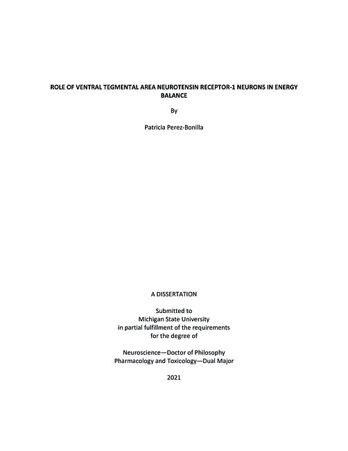 Role of ventral tegmental area neurotensin receptor-1 neurons in energy balance