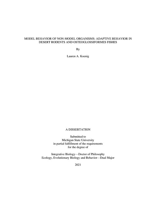 Model behavior of non-model organisms : adaptive behavior in desert rodents and osteoglossiformes fishes