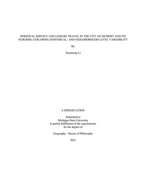 Personal service and leisure travel in the city of Detroit and its suburbs : exploring individual- and neighborhood-level variability