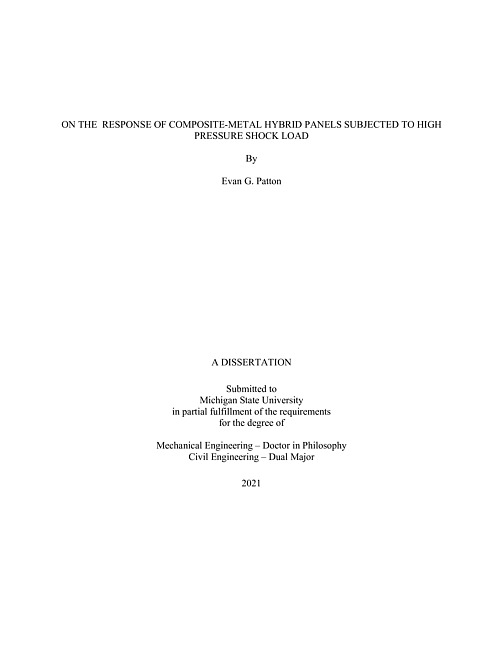 Structural light weighting is driving material innovation across automotive, defense and aerospace industries. In the case of defense and aerospace applications, structural lightweight materials increases the mobility of the military by allowing easier transportation to a particular destination as well as the transit around that destination. Integration of lightweight materials in the defense and aerospace industries requires the ballistic and blast capacities of a material to compete with traditional structural materials. Fiber reinforced plastics have low density and high strength, which make them ideal structural light weighting materials. Under high strain rate loadings, complex damage mechanisms occur within the composite allowing for large amounts of energy absorption. However, these complex damage mechanisms can also lead to undesirable structural characteristics. To improve the overall design of traditional composites, attempts have been made to leverage the benefits of both composite materials and metal alloys, while minimizing the weaknesses of each constituent. By incorporating both composite and metal materials in a single hybrid system the collective blast capacity in a joint material system can be improved. In this work, a free piston shock tube is tailored to create a quasi-Friedlander pressure form to simulate blast loading on a single interfaced, glass fiber reinforced thermoplastic composite metal hybrid panel. Damage and deflection characteristics are obtained for the hybrid material system. Damage is assessed by nondestructive evaluation (NDE) methods and dynamic deflection characteristics are obtained by an optical fringe projection method. Both damage and deflection observations are then correlated to an LS Dyna multi-material model where further observations and insights are drawn about the behavior of composite metal hybrid panels.