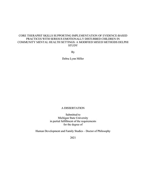 Core therapist skills supporting implementation of evidence-based practices with serious emotionally disturbed children in community mental health settings : a modified mixed methods delphi study