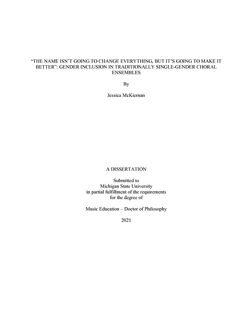 "the name isn't going to change everything, but it's going to make it better" : gender inclusion in traditionally single-gender choral ensembles