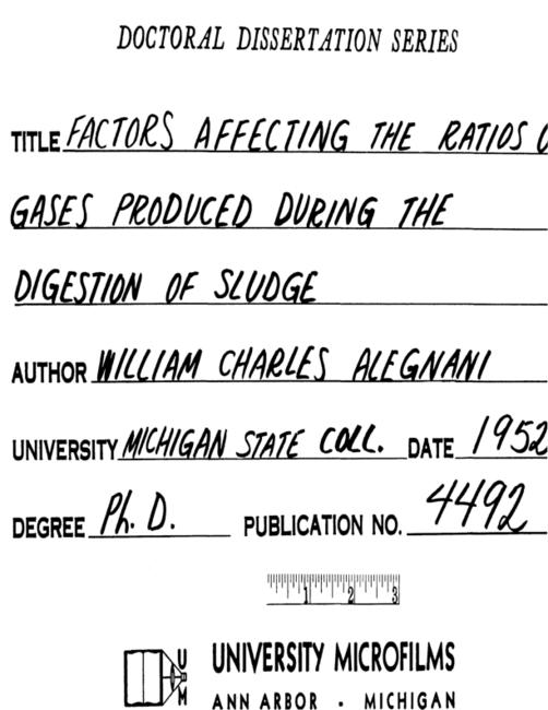 Factors affecting the ratios of gases produced during the digestion of sludge
