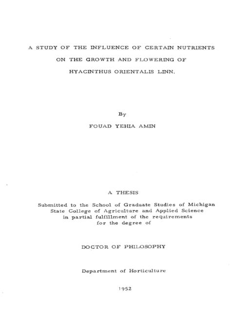 A study of the influence of certain nutrients on the growth and flowering of Hyacinthus orientalis Linn