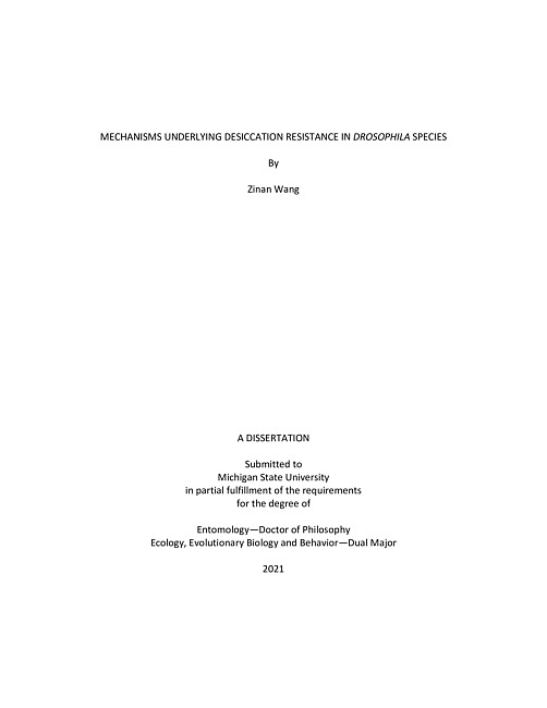 Mechanisms underlying desiccation resistance in drosophila species
