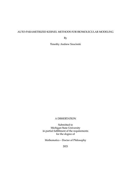 Auto-parametrized kernel methods for biomolecular modeling