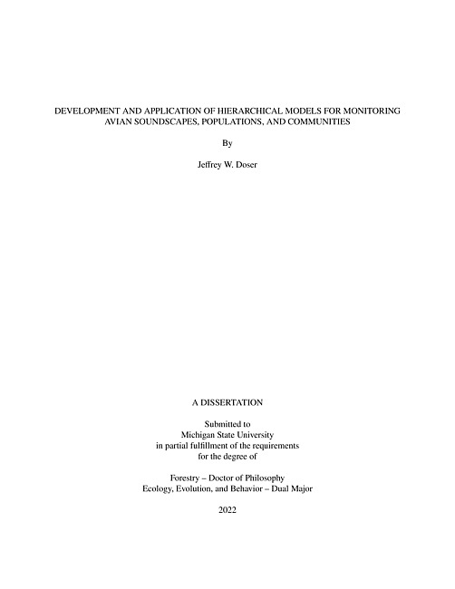 Development and application of hierarchical models for monitoring avian soundscapes, populations, and communities