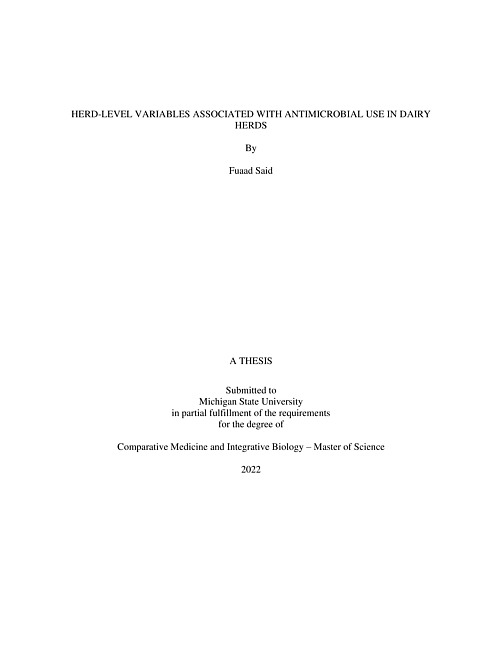 HERD- LEVEL VARIABLES ASSOCIATED WITH ANTIMICROBIAL USE IN THE DAIRY HERDS
