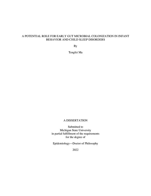 A POTENTIAL ROLE FOR EARLY GUT MICROBIAL COLONIZATION IN INFANT BEHAVIOR AND CHILD SLEEP DISORDERS