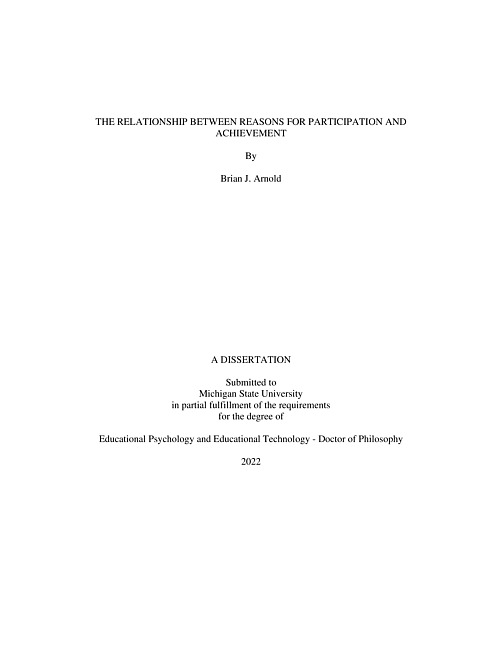 THE RELATIONSHIP BETWEEN REASONS FOR PARTICIPATION AND ACHIEVEMENT