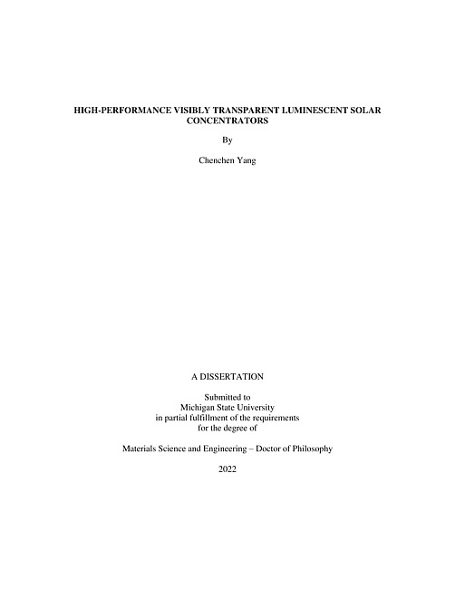 Visibly transparent solar harvesting surfaces provide an exciting new approach to harvesting solar energy around buildings and mobile electronics, effectively improving their energy utilization efficiency and autonomy while maintaining the aesthetics of the surfaces underneath. Transparent luminescent solar concentrators (TLSC), a key branch of transparent photovoltaic (TPV) technologies, selectively harvest the ultraviolet (UV) and near-infrared (NIR) portion of the incident solar irradiance, and optically transport the solar energy conversion to edge-mounted photovoltaic cells by waveguided photoluminescence. Due to the absence of electrodes, busbars, and collection grids over the solar harvesting area, the device structural simplicity enables these devices to achieve the highest levels of visible transparency and aesthetic quality. In the first part of this work, the theoretical efficiency limits of TLSCs are derived and practical considerations are outlined to approach these limits. In deriving these limits, key material and engineering challenges are identified to fully optimize TLSCs. Guided by this simulation work as a roadmap, three classes of fluorescent organic molecules (cyanine dyes, non-fullerene acceptors and BODIPYs) are designed, synthesized, and modified as luminophores for NIR selective-harvesting TLSC to improve the corresponding photoluminescence quantum yields, enhance the NIR spectral coverage, and suppress the reabsorption losses. The power conversion efficiency (PCE) of the corresponding NIR TLSCs have been significantly improved from 0.4% to 1.5%. To maximize the light harvesting in the invisible portion of the solar spectrum for higher PCEs, massive-downshifting nanoclusters (NC) with surface ligand modification were synthesized and combined with organic molecules into a dual-band TLSC system as UV and NIR selective harvesting luminophores, respectively. The resulting TLSC exhibits a record PCE over 3.0% with high visible transparency and is the first demonstration of this type of device which can effectively harvest both UV and NIR ranges selectively. Additionally, a practical method to seamlessly integrate these TLSCs onto arbitrary surfaces is developed to expand future deployment. Finally, standard protocols for assessing, characterizing, and reporting both the photovoltaic performance and aesthetic quality of TPVs and LSCs are also described. Collectively, these efforts highlight the promising potential of the TLSC technology for widespread adoption, effectively supplying the ever-growing energy demand on-site.