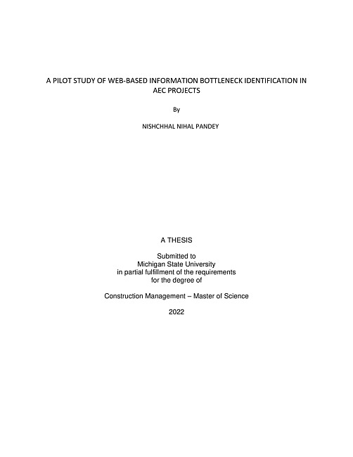 The success of the Architecture, Engineering, and Construction (AEC) project relies heavily on the effective communication and information exchange between project team members. A prominent reason for delays and progress shortcomings in AEC project teams is information bottlenecks, defined as missing project information bits which can be due to large influx of information or inadvertent withholding of information at a particular time. Information bottlenecks both in planning and execution phases of the project tend to cause schedule delays and cost overruns. Information and communication exchange patterns between project team members shed a light on the possible occurrence of information bottlenecks. Recent literature efforts have focused on use of software programming and key performance indicators (KPIs) to identify which phases of project are prone to occurrence of bottlenecks. One of the roadblocks in implementing majority of bottleneck identification techniques in AEC projects is the difficulty in execution. Some of the metrics defined are too complex and require rigorous manual calculations. Given the complexity and feasibility difficulties of the present methodologies for identification of bottleneck, this study aims to contribute to the body of knowledge by providing an adaptable tool that aims to improve the accuracy and practicality for predicting bottlenecks. Therefore, the research question this research aims to answer is "Can the usability and adaptability of information bottleneck prediction in AEC projects be improved through a web-based tool?"Expanding on Lean Construction concepts, key performance indicators (KPIs), efficiency, quantification metrics are developed to study the trends of information shared between AEC project team members. The developed model is semi-automated and reads data by importing the Microsoft Excel sheet which has all the raw project documentation data. A Python code developed by the researcher is used to extract information from the excel, create a dashboard, and publish information bottleneck calculations through a web-based tool. Statistical inferences drawn from the model are then be used to identify occurrence of project bottlenecks. The web-based platform is designed to cater the specific information exchange trends in a typical project. Providing visual representations, and explanations further ease the understanding of the root issue. Finally, through two expert interviews, the web tool is revised, and final tool is presented, and future directions of work are discussed.