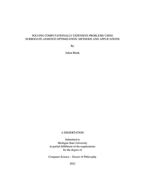 Solving computationally expensive problems using surrogate-assisted optimization : methods and applications