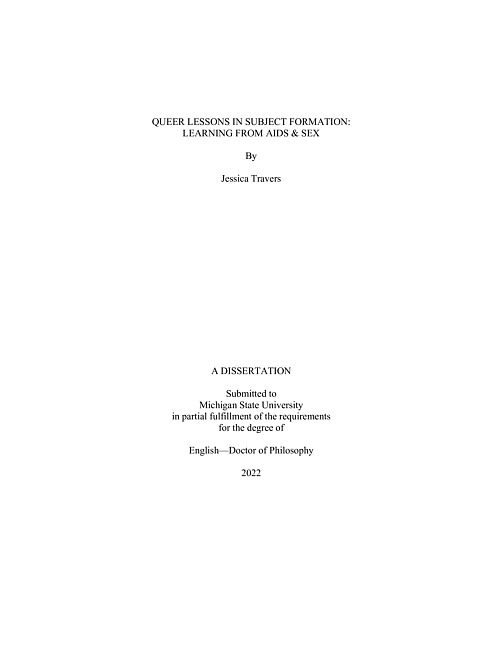 QUEER LESSONS IN SUBJECT FORMATION : LEARNING FROM AIDS & SEX