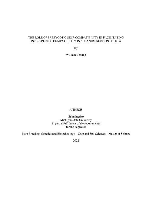 THE ROLE OF PREZYGOTIC SELF-COMPATIBILITY IN FACILITATING INTERSPECIFIC COMPATIBILITY IN SOLANUM SECTION PETOTA