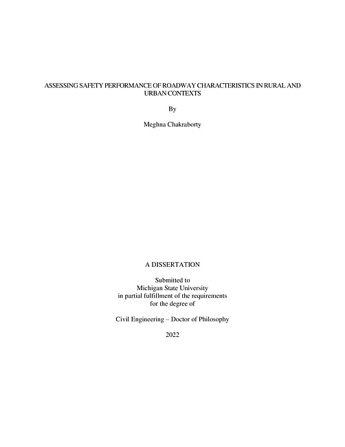 Assessing Safety Performance of Roadway Characteristics in Rural and Urban Contexts
