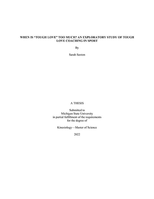 When is "tough love" too much? : an exploratory study of tough love coaching in sport