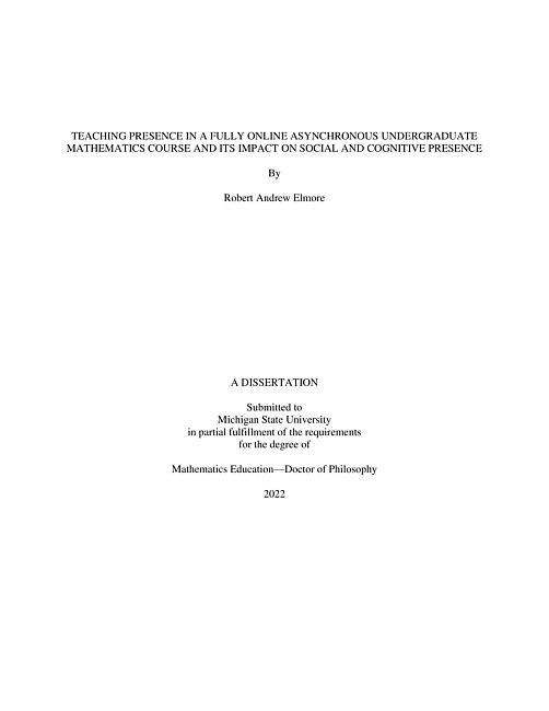 Teaching presence in a fully online asynchronous undergraduate mathematics course and its impact on social and cognitive presence