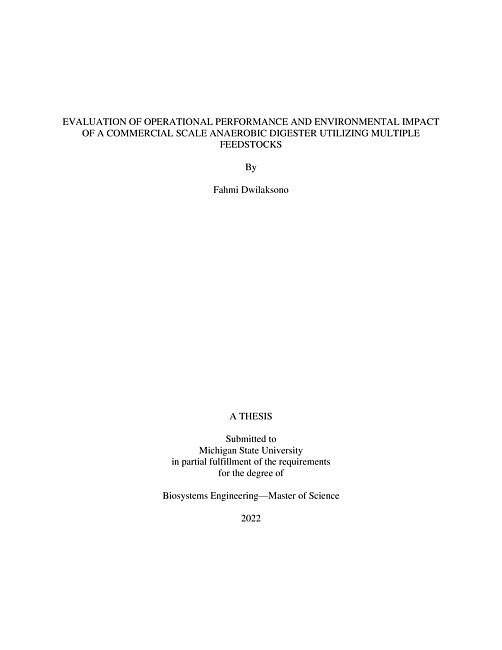Evaluation of operational performance and environmental impact of a commercial scale anaerobic digester utilizing multiple feedstocks