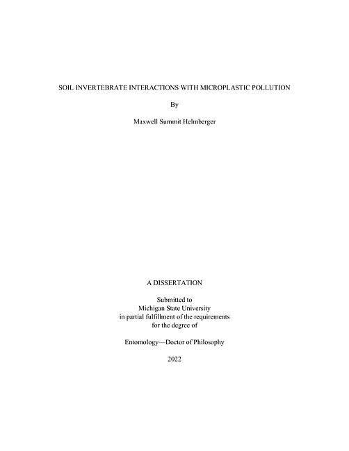 Microplastics are an unfortunate byproduct of human society's increasing reliance on synthetic plastics for packaging, clothing, and other products. Microplastics have long been known to pollute the world's oceans, but recent work has shown them to be just as prevalent, if not more so, in soil. Early findings indicate similar potential for harm to soil organisms as has been seen for marine microplastics. Yet aside from microplastics' direct physical and toxicological effects on soil organisms, one must also consider their interactions with these organisms, the ways in which organisms may influence microplastics' formation, occurrence, and distribution in soil as well as mediate their effects on the rest of the soil community. My research is focused on soil invertebrates' ability to create microplastics by fragmenting large plastic debris. To advance this goal, I first developed a novel fluorescent counterstaining technique, adding a blend of Calcofluor white and Evans blue to the traditional Nile red staining approach. The counterstain allowed microplastics to be visually distinguished from chitin, cellulose, and other biological materials that may survive chemical digestion along with the plastics, making it possible to detect plastics in samples of soil invertebrate fecal material and biomass. I then investigated four soil invertebrates' ability to generate microplastic from polystyrene (PS) foam debris. Individuals of the beetle larva Zophobas morio, the cricket Gryllodes sigillatus, the isopod Oniscus asellus, and the snail Cornu aspersum were placed in glass arenas with pieces of pristine or weathered PS foam for 24 h, after which I counted microplastic particles in the invertebrates' fecal material, cadaver biomass, and the sand substrate of their arenas. Z. morio fragmented all plastics and produced the most detectable microplastic, C. aspersum produced almost none, and G. sigillatus and O. asellus fragmented only the weathered plastics. In a follow-up experiment with O. asellus, identical pieces of pristine PS foam were subjected to ultraviolet light, immersion in a soil suspension, and combination treatments to assess the effects of exposure to the elements on fragmentation by the isopods. Plastics immersed in the soil suspension were fragmented to a significantly greater degree than other treatments. Together, these results suggest that large plastic debris could represent a source of microplastics into soil environments, and that laboratory experiments investigating fragmentation of pristine plastics may risk underestimating the phenomenon. My further investigations focused on fragmentation of weathered PS foam by the isopods O. asellus and Trachelipus rathkii, examining fragmentation over different spans of time and the effects of natural materials as alternate substrates for the isopods. Neither species appreciably fragmented the PS foam until after 48 h, an interesting contrast to the previous experience, and O. asellus produced more fragments than T. rathkii. The presence of wood as an alternate substrate did not significantly affect fragmentation. More broadly, these results indicate that laboratory experiments should be conducted over short timescales and do not necessarily need to include alternate or supplementary food for the study organisms. In summary, the potential of soil invertebrates to affect microplastic dynamics, complicating their effects on other organisms compared to what would be seen in a standard ecotoxicological assay, should be considered when assessing this novel pollutant's impact on soil ecosystems.