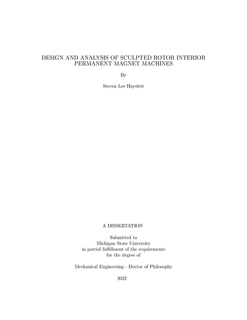 Design of interior permanent magnet electrical machines is complex. Interior permanent magnet machines offer a good balance of cost, efficiency, and torque/power density. Maximum torque and power production of an interior permanent magnet machine is achieved through balancing design choices related to the permanent magnet and salient features. The embedded magnet within the salient structure of the rotor lamination results in an increase in harmonic content. In addition, interaction of the armature, control angle, and rotor reluctance structure creates additional harmonic content. These harmonics result in increased torque ripple, radial forces, losses, and other unwanted phenomena. Further improvements in torque and power density, and techniques to minimize harmonics, are necessary. Typical interior permanent magnet machine design results at the maximum torque per amp condition are at neither the maximum magnet nor maximum salient torque, but at the best combination of the two. The use of rotor surface features to align the magnet and the reluctance axis allows for improvement of torque and power density. Reduction of flux and torque harmonics is also possible through careful design of rotor sculpt features that are included at or near the surface of the rotor. Finite element models provide high fidelity and accurate results to machine performance but do not give insight into the relationship between design parameters and performance. Winding factor models describe the machine with a set of Fourier series equations, providing access to the harmonic information of both parameters and performance. Direct knowledge of this information provides better insight, a clear understanding of interactions, and the ability to develop a more efficient design process. A new analytical winding function model of the single-V IPM machine is introduced, which considers the sculpted rotor and how this model can be used in the design approach of machines. Rotor feature trends are established and utilized to increase design intuition and reduce dependency upon the lengthy design of experiment optimization processes. The shape and placement of the rotor features, derived from the optimization process, show the improvement in torque average and torque ripple of the IPM machine.