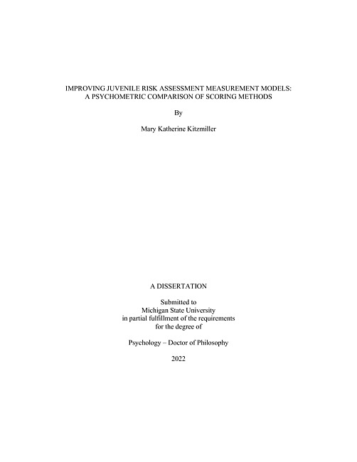 Improving juvenile risk assessment measurement models : a psychometric comparison of scoring methods