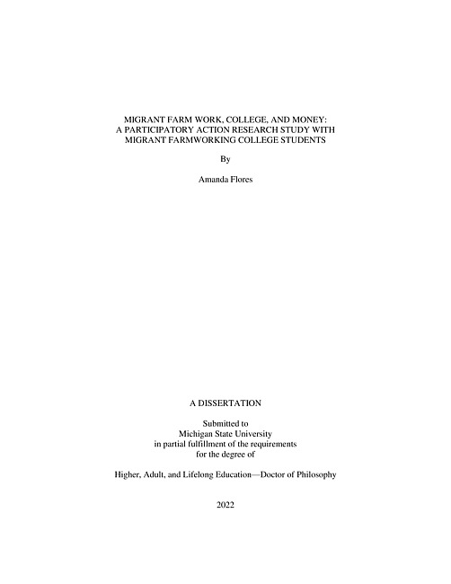 Migrant farm work, college, and money : a participatory action research study with migrant farmworking college students