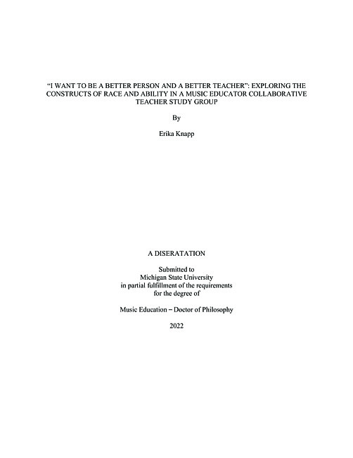 "I want to be a better person and a better teacher" : exploring the constructs of race and ability in a music educator collaborative teacher study group