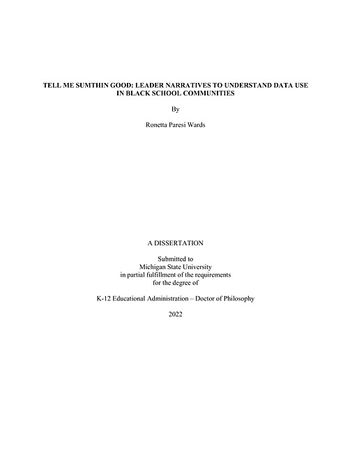 Tell me sumthin good : leader narratives to understand data use in Black school communities