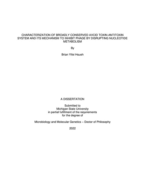 Characterization of broadly conserved avcid toxin-antitoxin system and its mechanism to inhibit phage by disrupting nucleotide metabolism