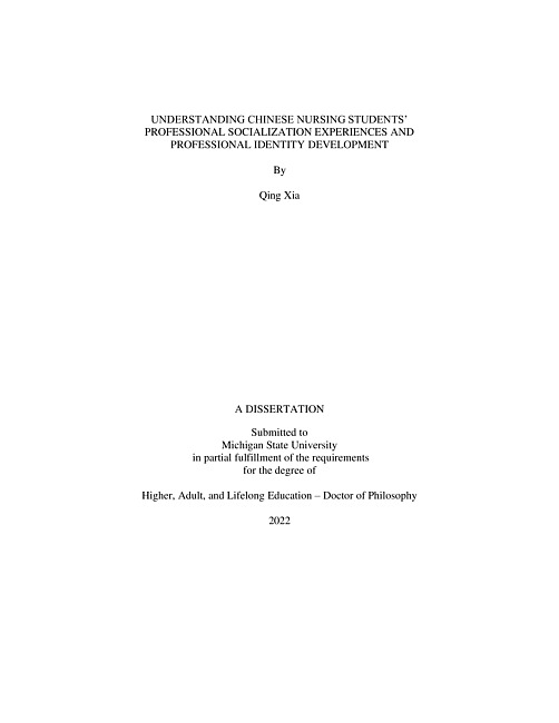 Chinese hospitals face high nurse attrition constantly despite the Chinese nursing education system graduating a half-million students. Many leave the profession as soon as they graduate, and those who stay in the nursing profession hold ambivalent feelings about their nursing identity. This study examines undergraduate Chinese nursing students' professional socialization experiences in American and Chinese hospitals to illuminate how the hospital experiences affect nursing students' professional identity development. In addition, I employed narrative inquiry to explore the participants' stories in this study. This study is guided by Cohen's (1981) three- sphere framework for nursing students' socialization and professional identity development (cognitive, interactional, and personality sphere) emphasizing students' experiences in the interactional sphere. This study focuses on understanding how Chinese nursing students' professional socialization experiences in hospitals shape their professional identity and self-concept. The study's participants' narratives revealed stark differences between their experiences in the American hospital and Chinese hospitals. The American hospital experiences were generally positive, while the participants' experiences in Chinese hospitals were negative. The negative experiences profoundly impact Chinese nursing students' professional identity and make them uncertain about their future in the nursing profession. The study's findings provided insights into what Chinese students learned during their experiences in the American hospital, which challenged their previous understanding of nursing and care and inspired them to provide humane, compassionate, and innovative care to patients. The participants' experiences in the Chinese hospitals revealed that the most salient professional socialization, hospital experience, was more than less ideal. In addition, the students encountered numerous challenges from burnout, unfriendly peer nurses, patients and their families, and poor leadership. Furthermore, the study illuminated one of the root problems for China's high nurse attrition rate, the Chinese College Entrance Exams, and its admission policies that recruit students to study nursing involuntarily. I concluded by offering a sociocultural lens to study Chinese nursing students' professional socialization and identity development. I further provided suggestions for practice to improve nursing students' recruitment, support nursing students' mental health, and collaboration between tertiary hospitals, nursing colleges, and researchers. In addition, I suggested applying a transformative learning lens in studying nursing education abroad programs in future research. Also, more research with qualitative methodology is needed to learn about the nuanced Chinese nursing students' professional socialization and identity development to understand better the challenges that the students face and facilitate meaningful reforms in nursing education.