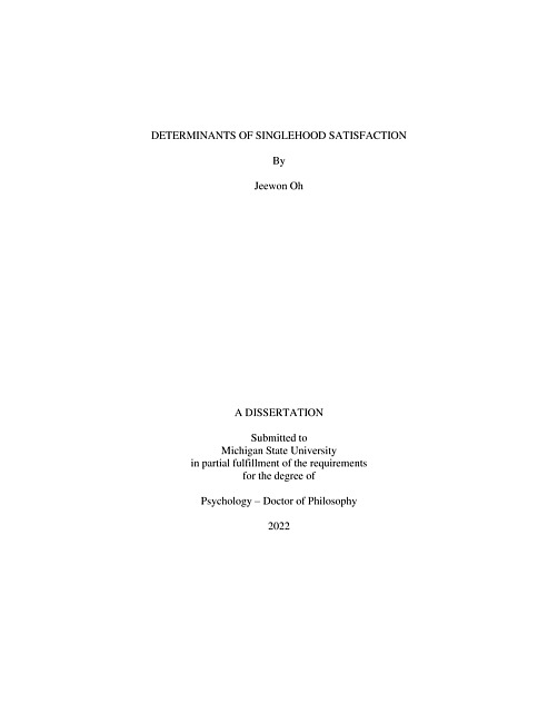Although everyone experiences singlehood, people's experiences and satisfaction with singlehood have not been as thoroughly examined as people's experiences with romantic relationships. However, single people make up a heterogeneous group and the proportion of single people is rising in many places (Jones & Gubhaju, 2009; Lee & Payne, 2010; U.S. Census Bureau, 2020), making it particularly timely to identify predictors of a satisfying single life. Across a series of studies, this dissertation aimed to examine psychological factors underlying a satisfying single life. First, I examined how attitudes about romantic relationships changed and their links to well-being (Study 1). Expectations toward relationships at the societal level and individual level changed over time. Fewer people perceived marriage as a necessity in recent years. However, even among single people, those who perceived marriage as a necessity tended to report higher life satisfaction. Within individuals, people expected fewer benefits and fewer negatives from being in a relationship over time, and expectations had differential links with life satisfaction and singlehood satisfaction. Even though expectations and resulting singlehood satisfaction might be assumed to change because of major life events (e.g., job loss), trajectories of singlehood satisfaction were not moderated by most major life events except experiencing declines in self-rated health was associated with lower levels of singlehood satisfaction (Study 2). Asking long-term single people, I identified events that single people perceived to be influential for their singlehood (Study 3; e.g., experiences that highlighted their independence). Regardless of the actual event, perceiving the event to be positive predicted higher life satisfaction and singlehood satisfaction. I integrated findings across studies and discuss implications, limitations, and future directions.