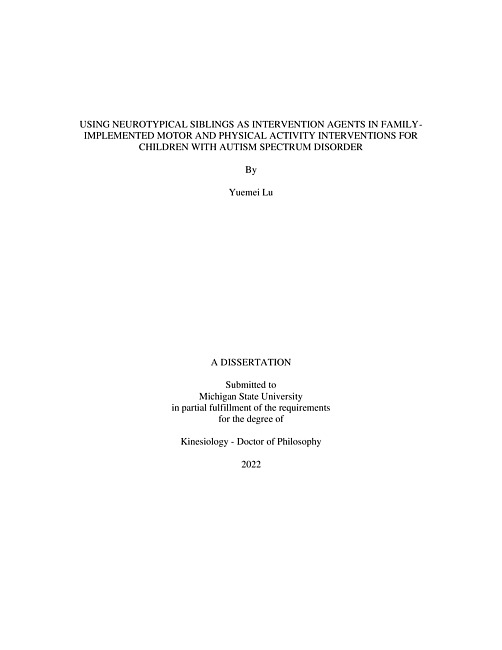 Using neurotypical siblings as intervention agents in family-implemented motor and physical activity interventions for children with autism spectrum disorder