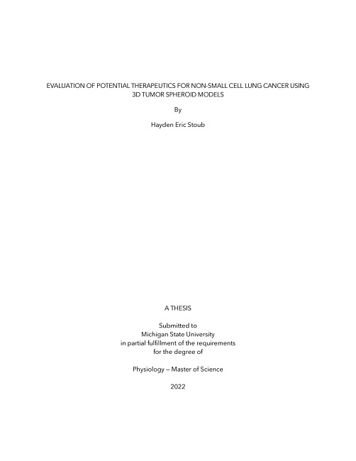 Evaluation of potential therapeutics for non-small cell lung cancer using 3d tumor spheroid models