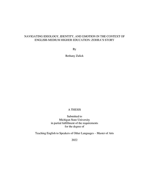 Navigating ideology, identity, and emotion in the context of English-medium higher education : Zohra's story