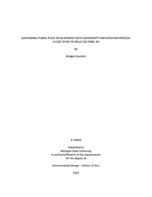 Sustainable public place development with community participant process : a case study of Belle Isle Park, MI